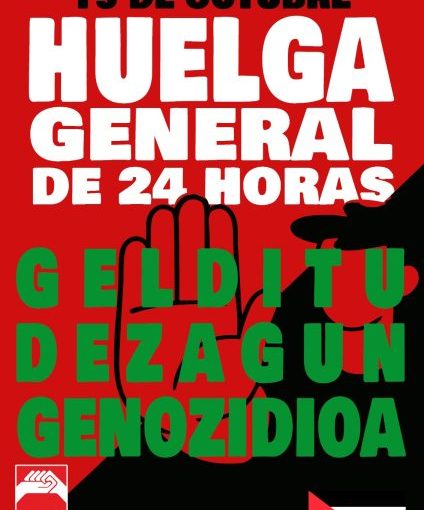 Hoy en Bilbao, los sindicatos LAB, CCOO Euskadi, UGT Euskadi, ESK, STEILAS, CGT, Etxalde e HIRU anunciamos la convocatoria de un Paro General en Araba, Bizkaia y Gipuzkoa para el próximo 15 de octubre, una convocatoria que también se hará efectiva en Nafarroa.. Se trata de una jornada de LUCHA,