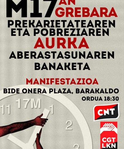 Nos manifesatremos el Martes a las 18:30h en Barakaldo desde la plaza Bide Ona. Salida metro Los fueros.