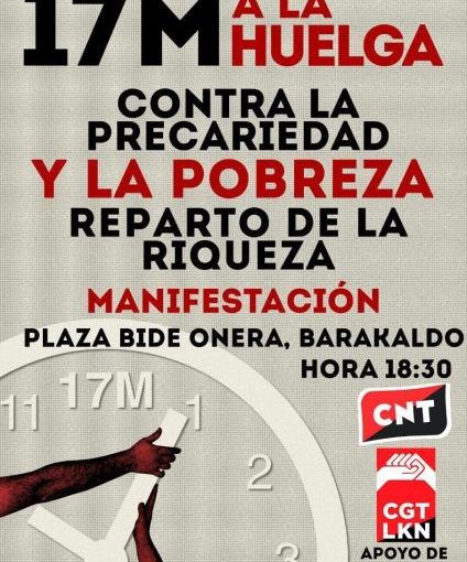 Nos manifesatremos el Martes a las 18:30h en Barakaldo desde la plaza Bide Ona. Salida metro Los fueros.