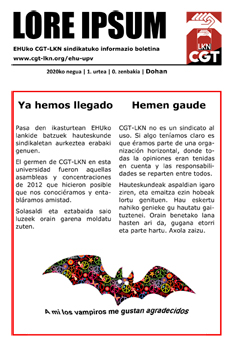 Ante la convocatoria de elecciones sindicales previstas para el próximo día 26 de marzo, trabajadoras y trabajadores del PAS de la UPV/EHU nos hemos organizado para concurrir a las mismas como Confederación General del Trabajo Lanaren Konfederakunde Nagusia CGT-LKN.